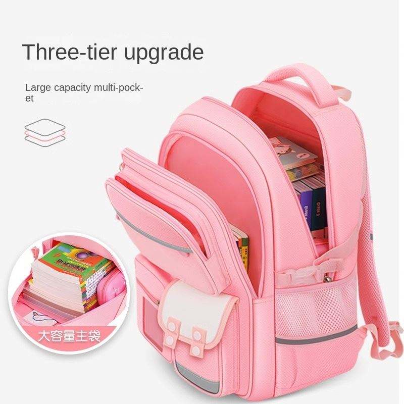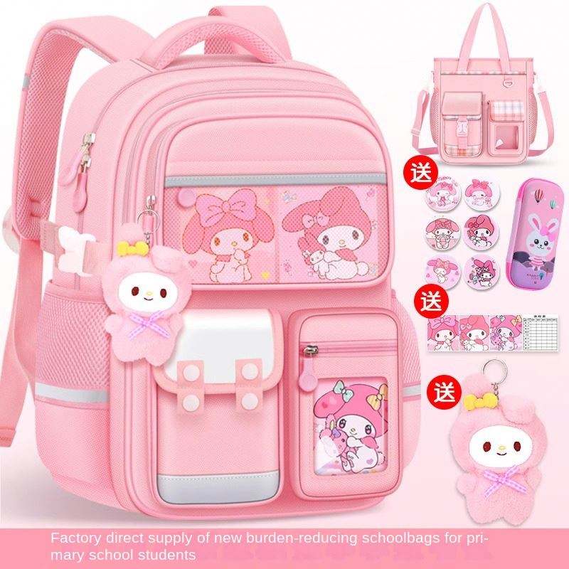 กระเป๋านักเรียนการ์ตูนแฟชั่นสำหรับเด็กผู้หญิงระดับประถมศึกษา ความจุขนาดใหญ่ ลดภาระน้ำหนัก สายสะพายแบบเบาะลม น้ำหนักเบา กันน้ำ