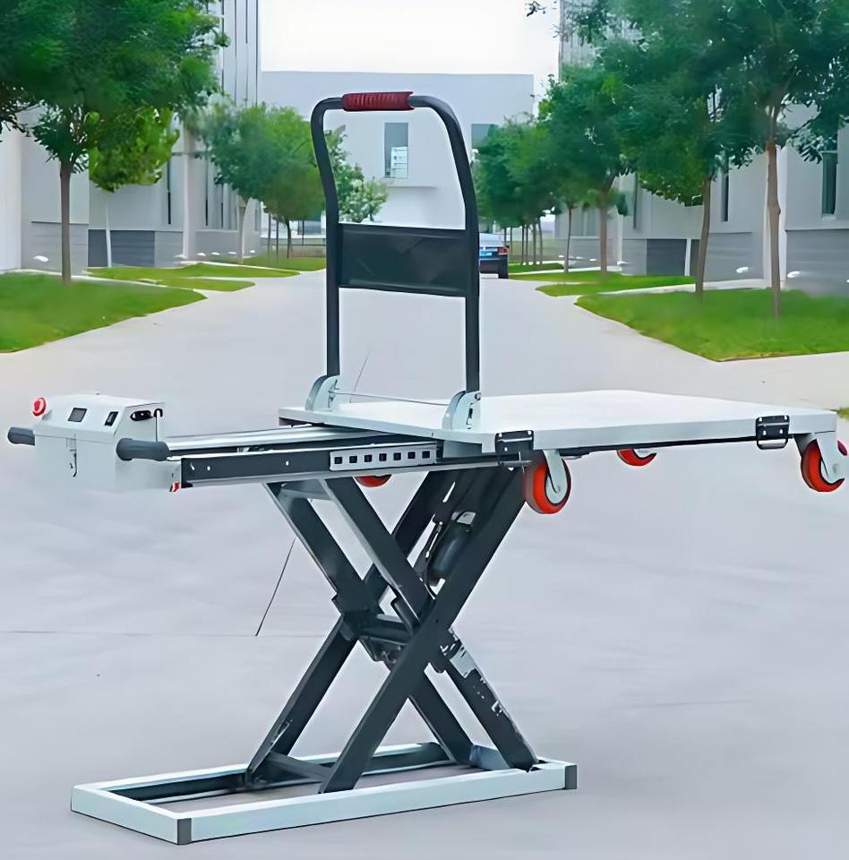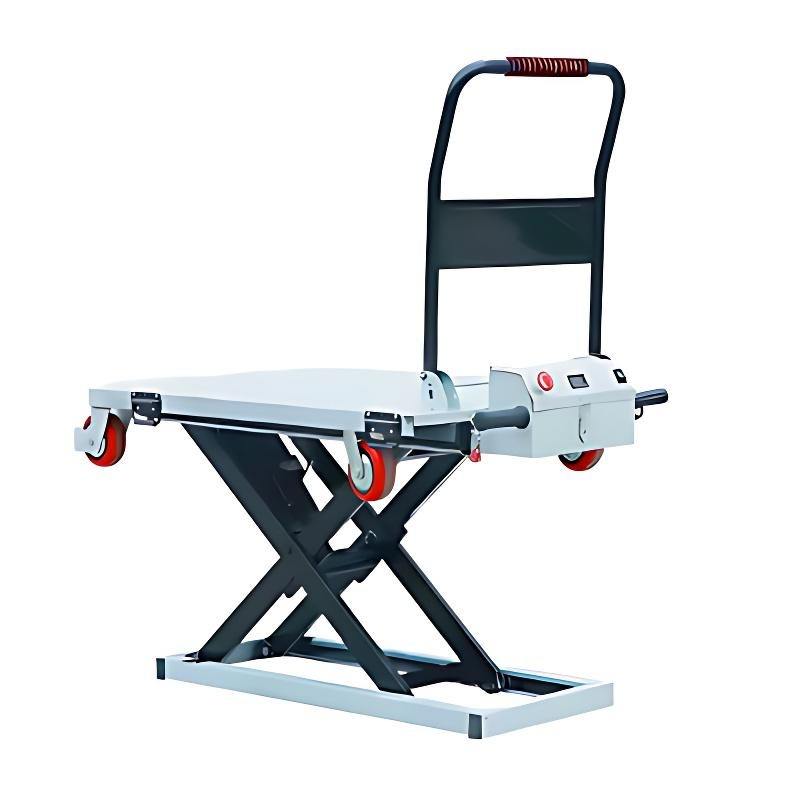 รถเข็นยกแบบกรรไกรและแท่นยกไฮดรอลิกแบบพกพา รถเข็นไฟฟ้าแบบแบนคุณภาพสูงสำหรับขนส่งสินค้า 200/300 กก.