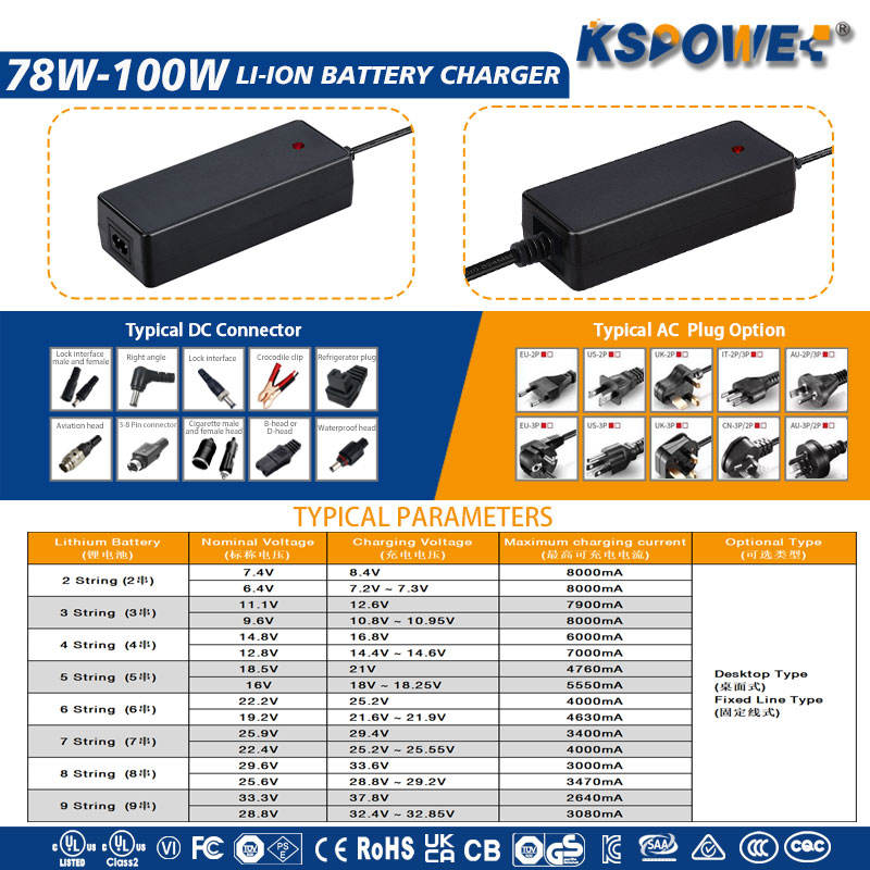 อะแดปเตอร์ชาร์จแบตเตอรี่ลิเธียม36V 42V DC