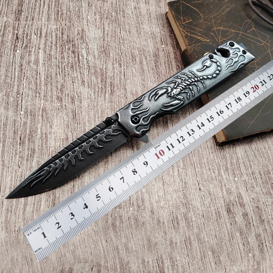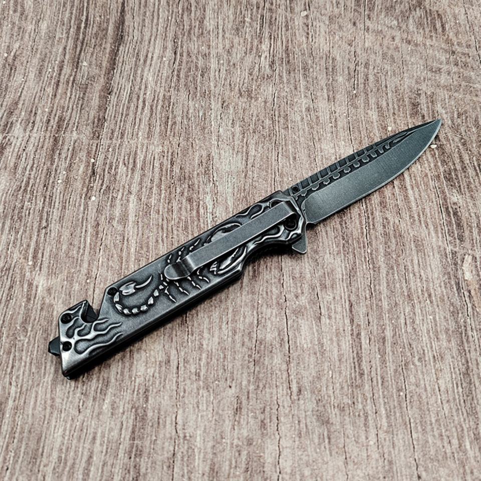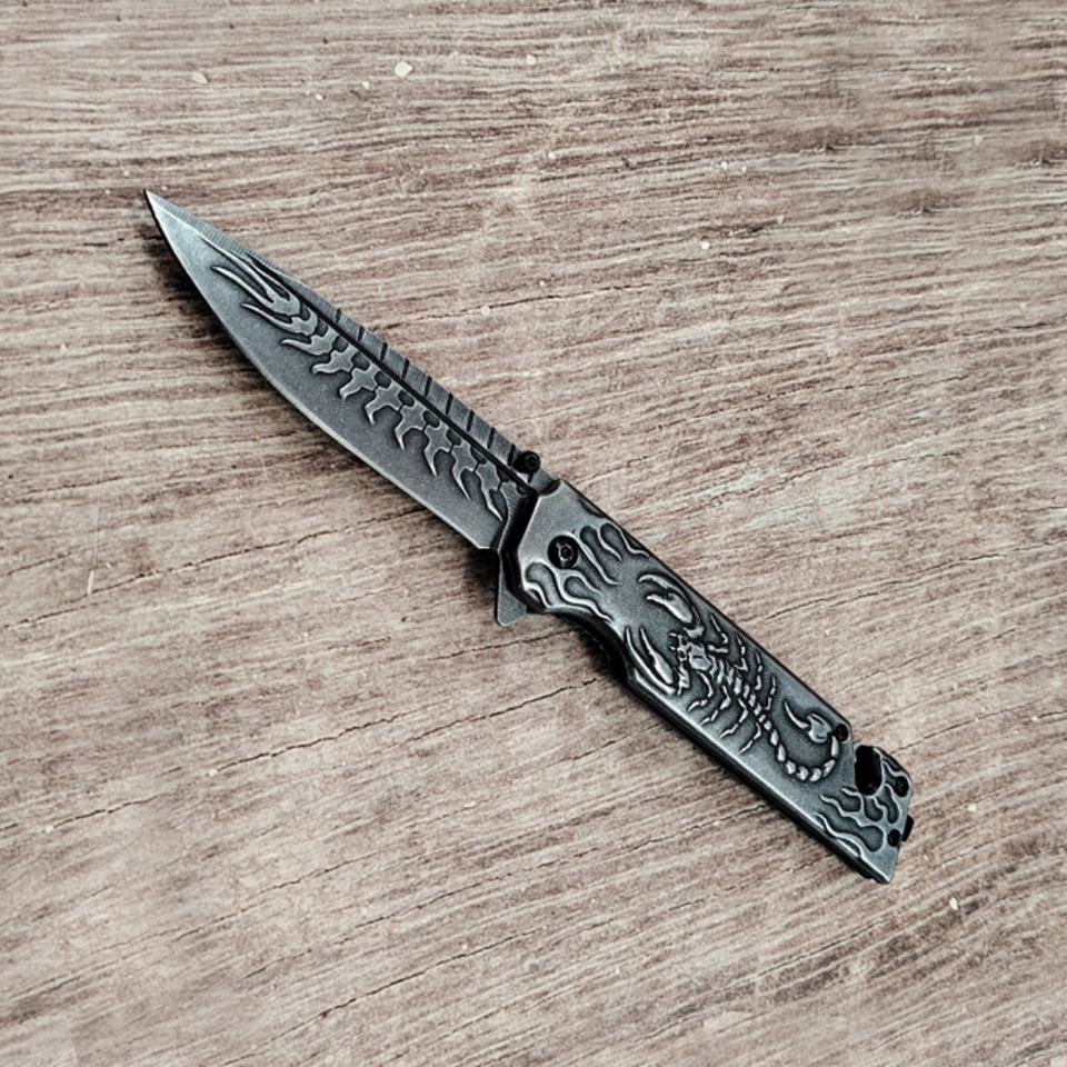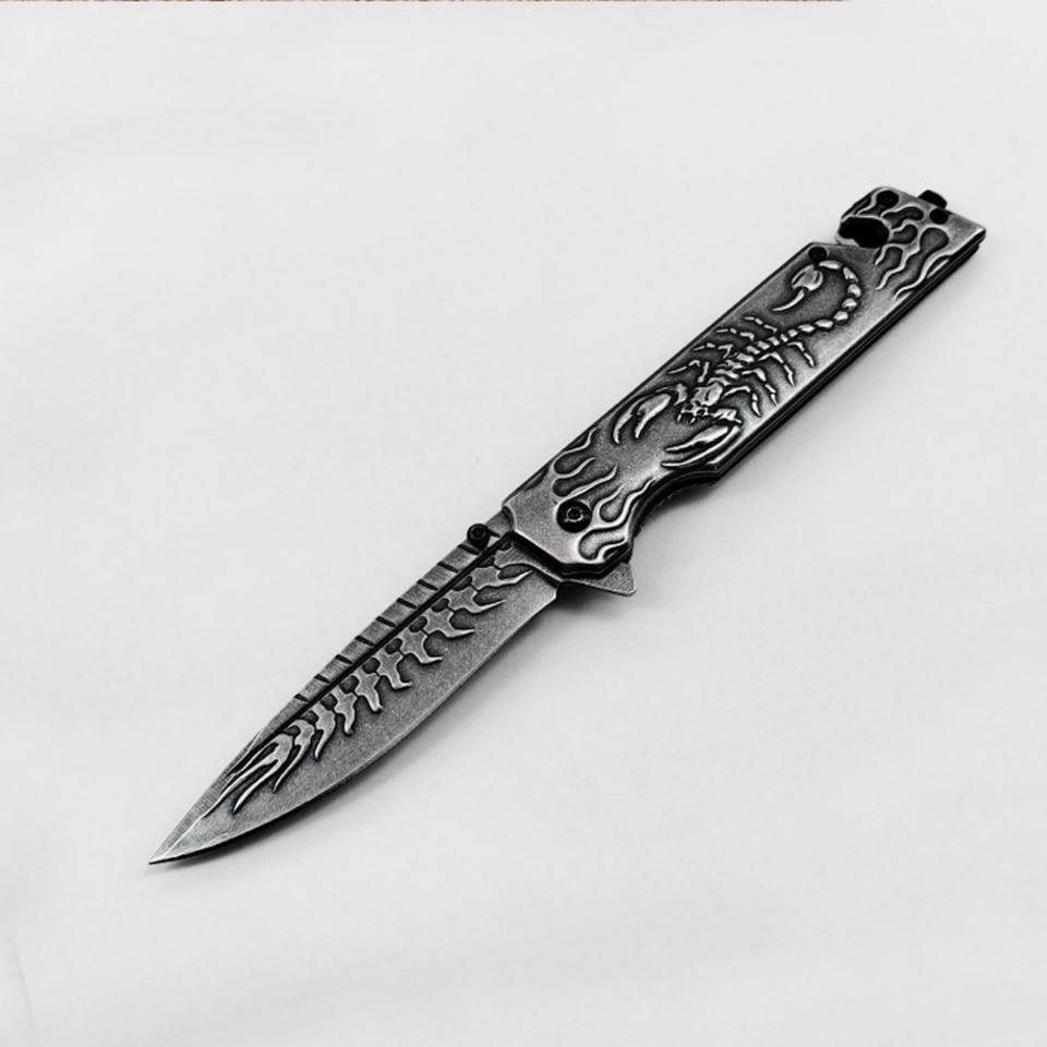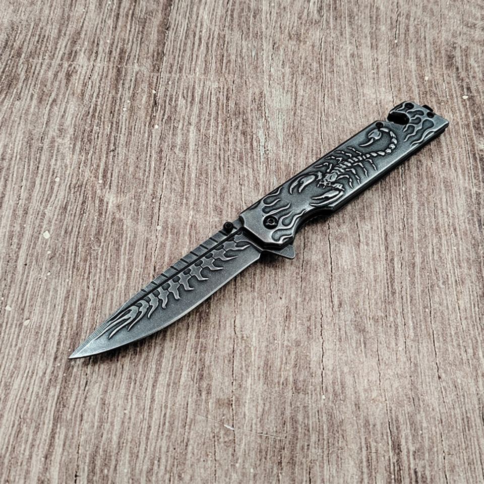 Scorpion Relief Stone Wash Stainless Steel Handle Customizable OEM Grade DIY EDC Camping Knife