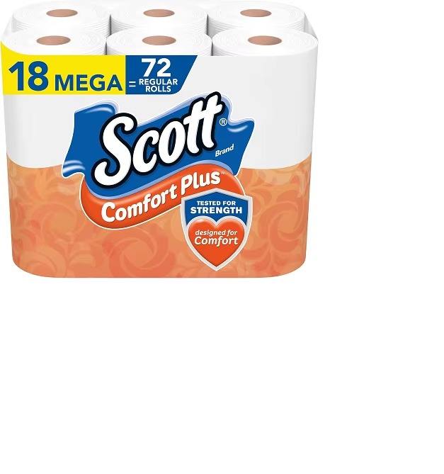 Scott Comfort Plus Toilet Paper Bulk 18 Mega Rolls 1 Ply 462 Sheets Strong Bathroom Tissue for Home and Office
