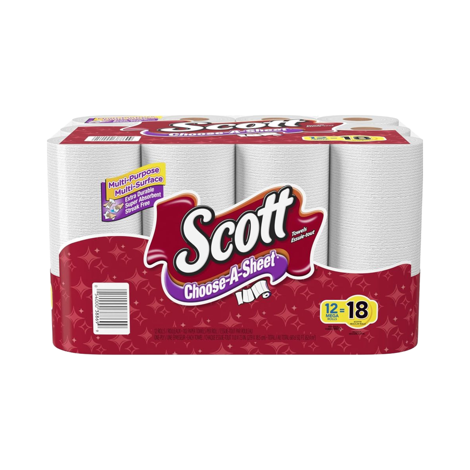 กระดาษเช็ดมือ Scott แบบเลือกแผ่นได้ - 12 ม้วนใหญ่ = 22 ม้วนปกติ (102 แผ่นต่อม้วน)