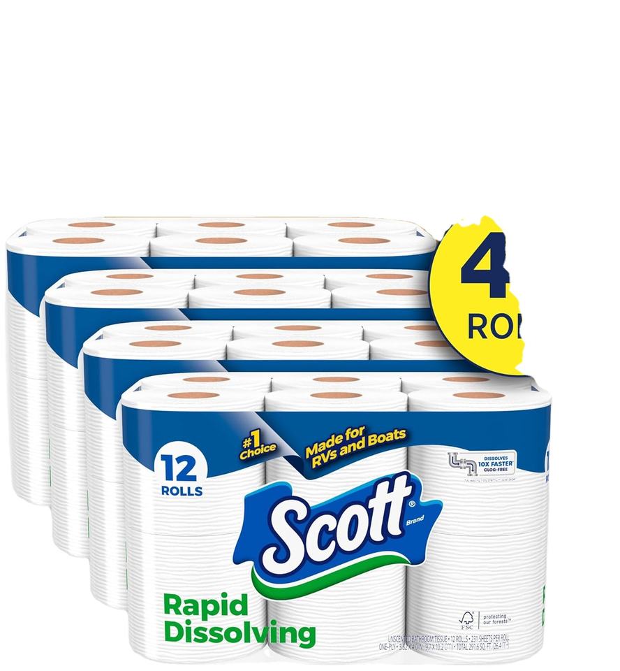 กระดาษชำระสกอตต์แบบละลายเร็ว, 48 ม้วนคู่, ปลอดภัยสำหรับบ่อเกรอะ, กระดาษชำระ