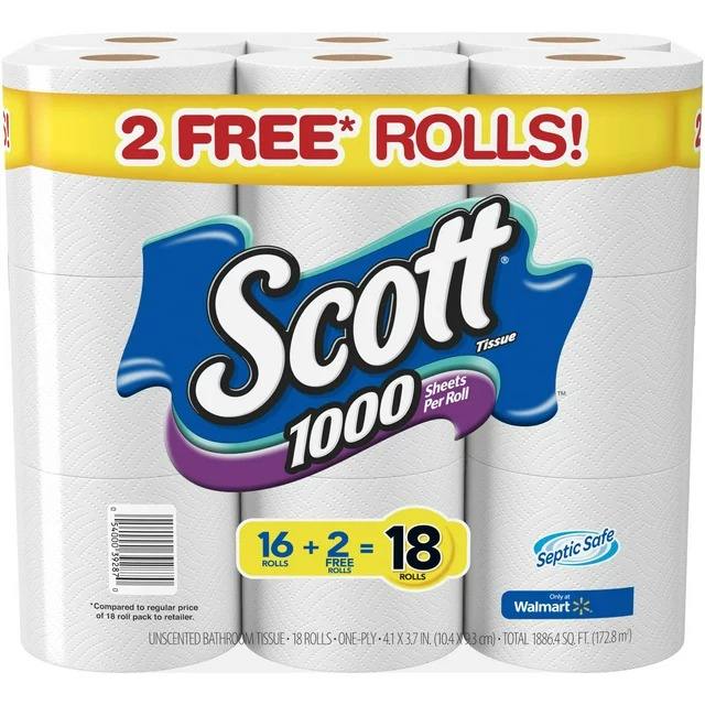 กระดาษทิชชู่สก็อตต์ Unscented 1000 แผ่น 18 ม้วน