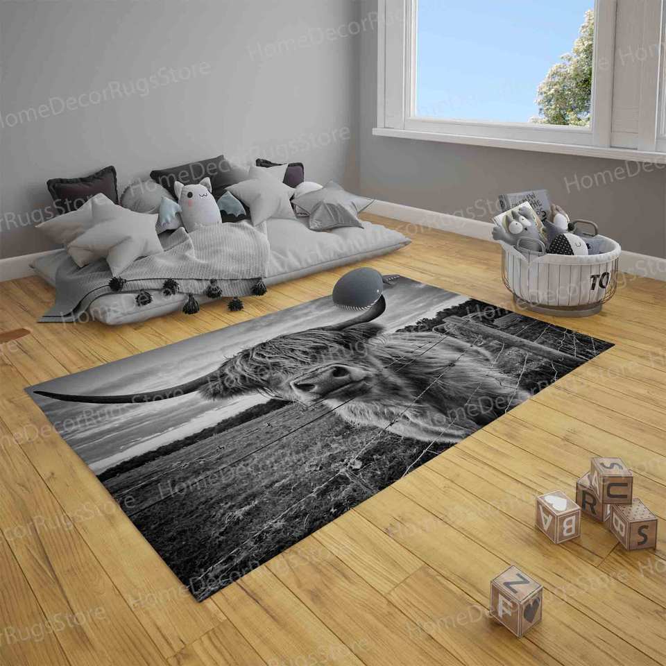 พรมพิมพ์ลายวัวไฮแลนด์สก็อต - ของตกแต่งบ้านสไตล์ฟาร์มเฮาส์ พร้อมพรมขนนุ่ม