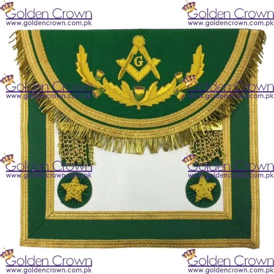 ตราสัญลักษณ์หนังปักมือของมาสเตอร์เมสันสกอตช์ไรต์ - ลายไวน์สีเขียว พร้อมเข็มกลัดนิรภัย | 3D สไตล์คลาสสิก ปรับแต่งได้