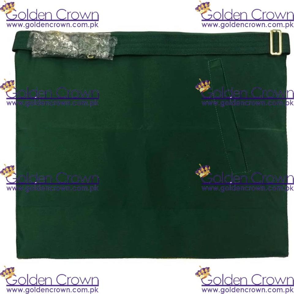 ผ้ากันเปื้อนหนังต้นแบบชาวสก็อตเย็บปักด้วยมือเครื่องราชกกุธภัณฑ์ช่างก่ออิฐที่มีตราสัญลักษณ์สีเขียว