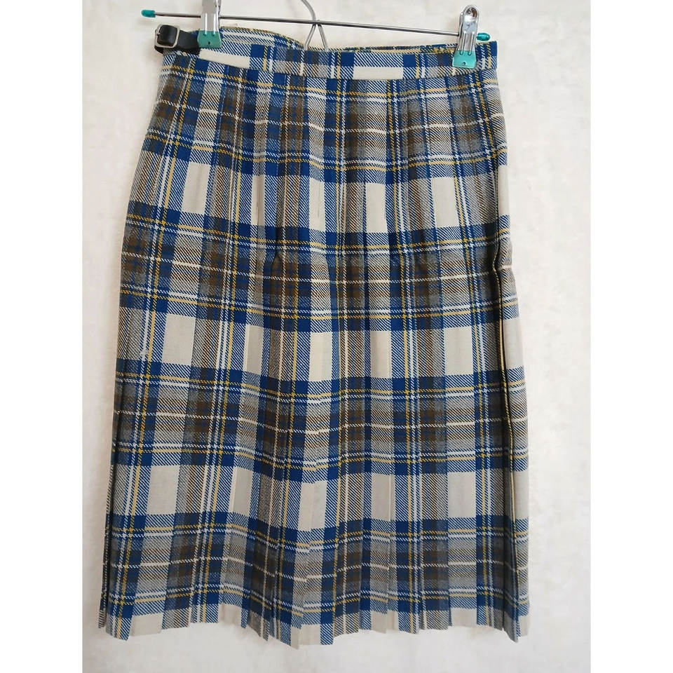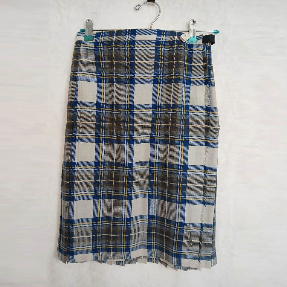 กระโปรงผ้าทวีตผสมลายสก็อตสีน้ำเงินแบบจีบยี่ห้อ Scottish Stewart สีน้ำเงินเบจ รุ่น 2026