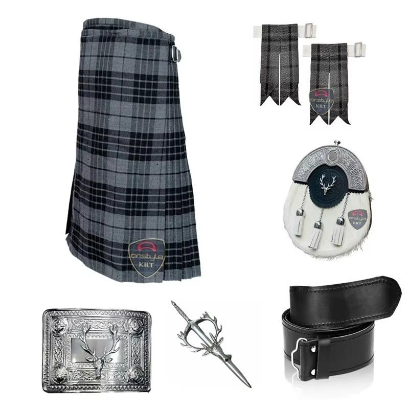 ชุด Kilt unisex 6ชิ้นใส่ได้ทั้งแบบลำลองทำจากเหล็กทนทานสำหรับงานแต่งงานและงานอีเวนต์