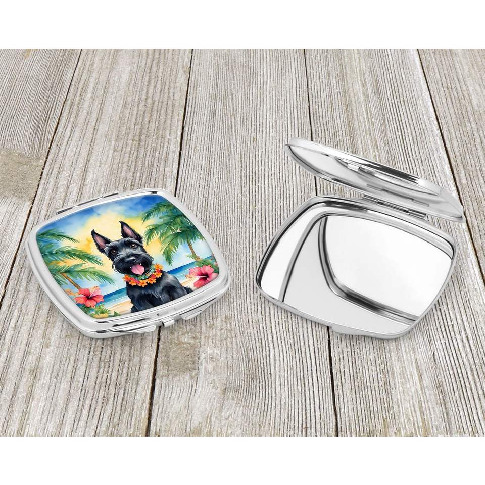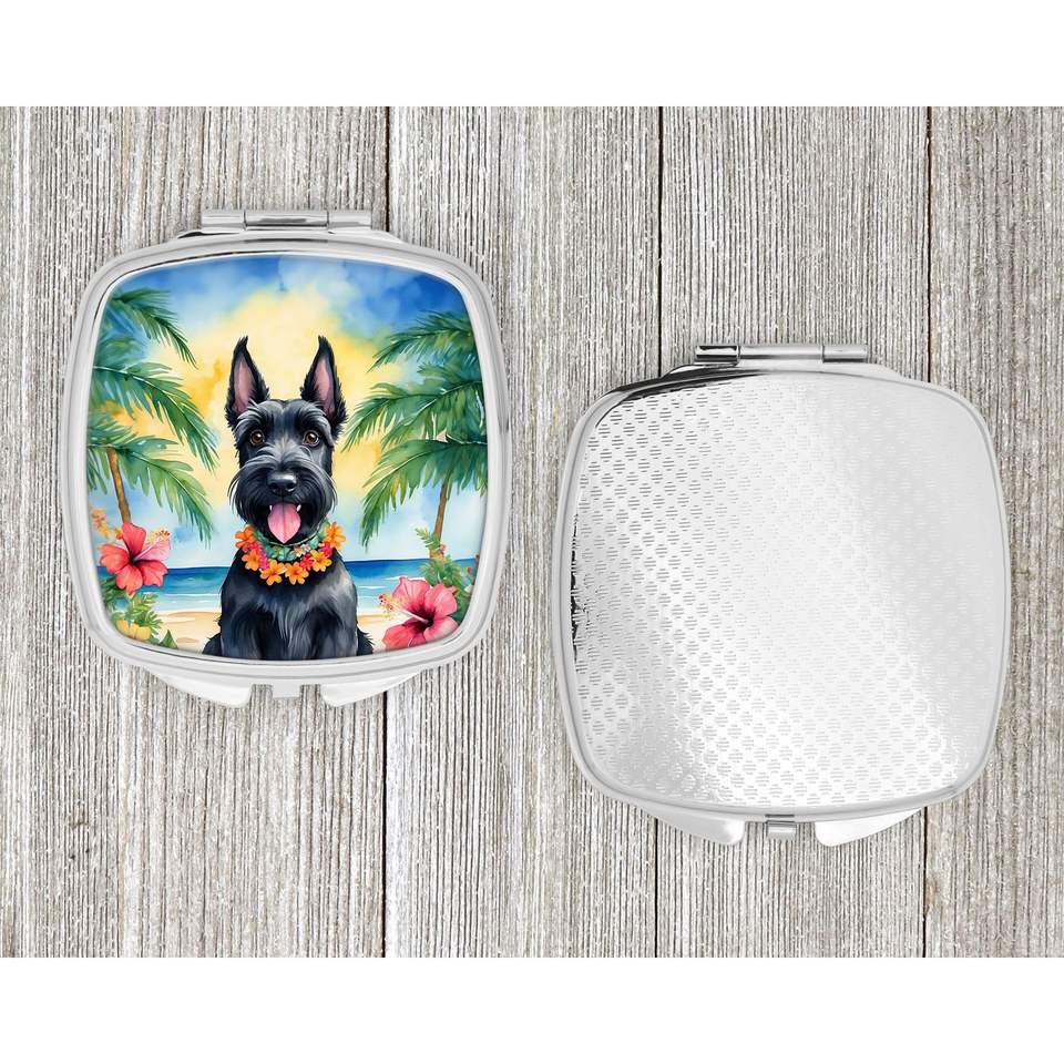 Scottish Terrier Luau Compact Travel Makeup Mirror Portable Folding Handheld Decorative Gift for Women and Girls Pocket Size