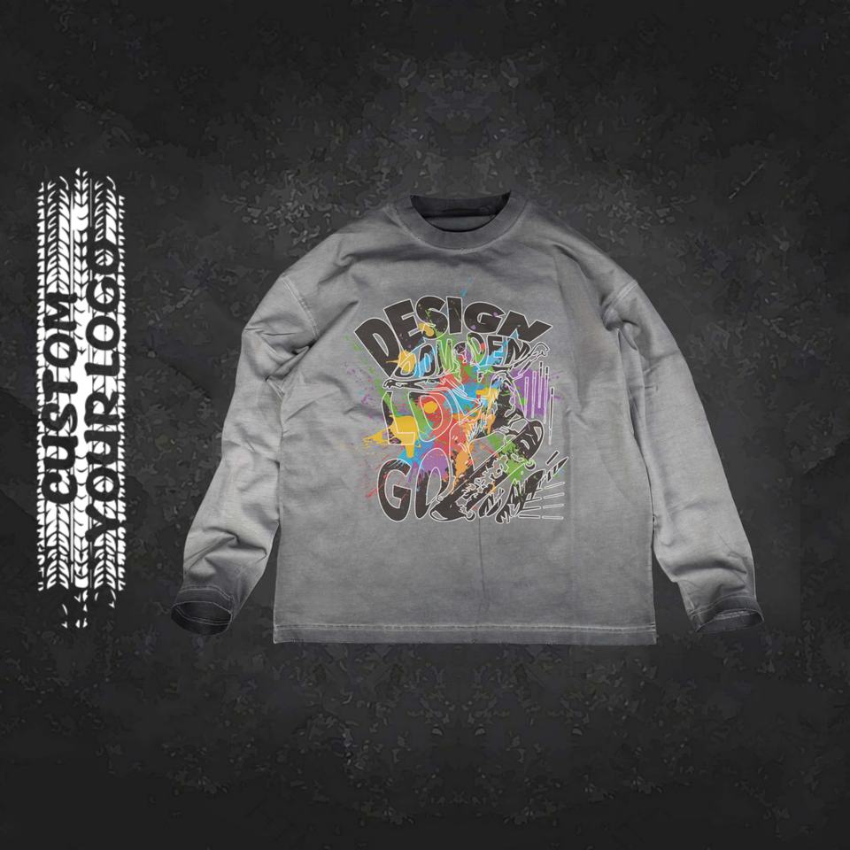 เสื้อยืดโอเวอร์ไซส์ทรงบ็อกซี่ แขนยาว ลายสกรีนกราฟิก สไตล์สตรีทแวร์ ล้างสีแบบแอซิดวอช ดีไซน์ดิสเทรส ตัดเย็บพิเศษสำหรับผู้ชาย