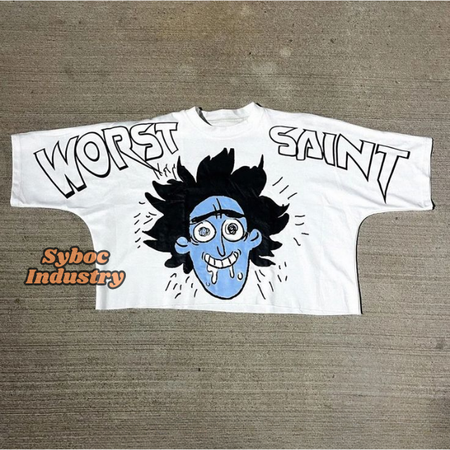 เสื้อยืดพิมพ์สกรีนสำหรับผู้ชายน้ำหนักมากผ้าฝ้าย GSM 280มีสไตล์ออกแบบลายกะโหลกโอเวอร์ไซส์เสื้อครอปทรงพอดีตัวผู้ชาย