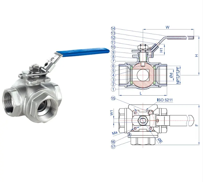 บอลวาล์วแบบเกลียว3ทาง4ทาง5ทิศทาง4ทาง Aisi 304 316 EN10213 1.4308 1.4408ไฮดรอลิกแก๊สน้ำใช้งานทั่วไป