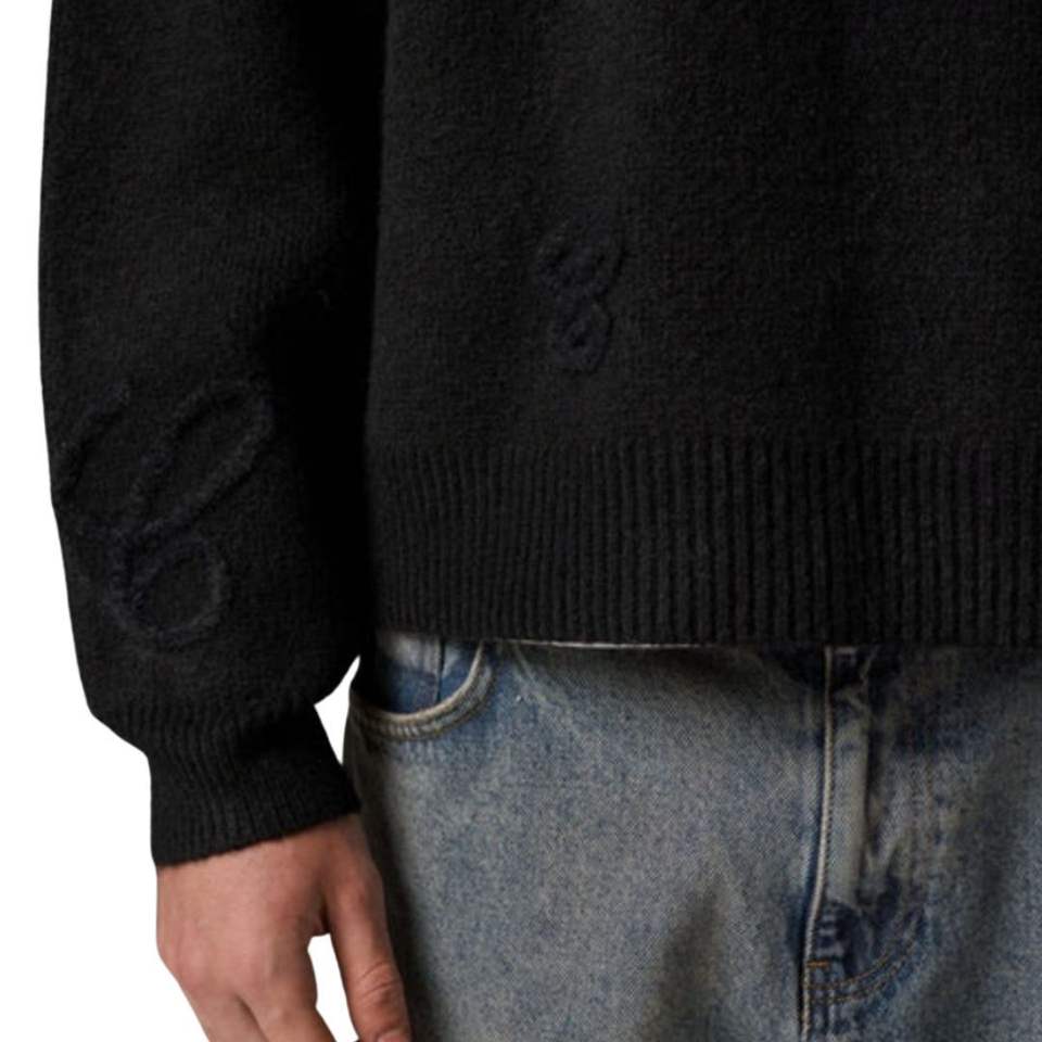 Script Applique Knitted Jumper Black Embroidered Sweater Casual Crewneck Premium Cotton Comfortable Winter Wear Men’s Fashion