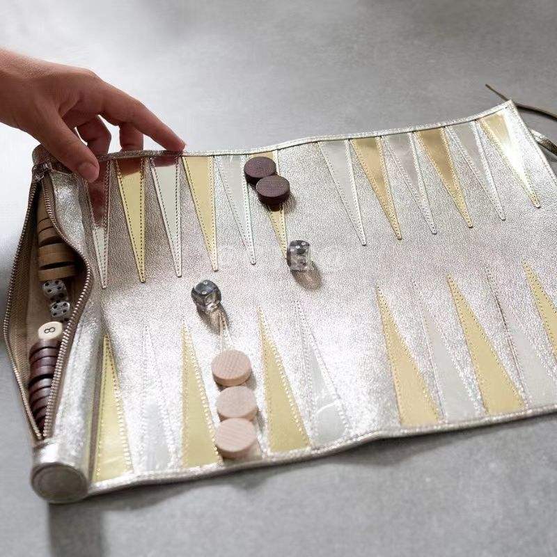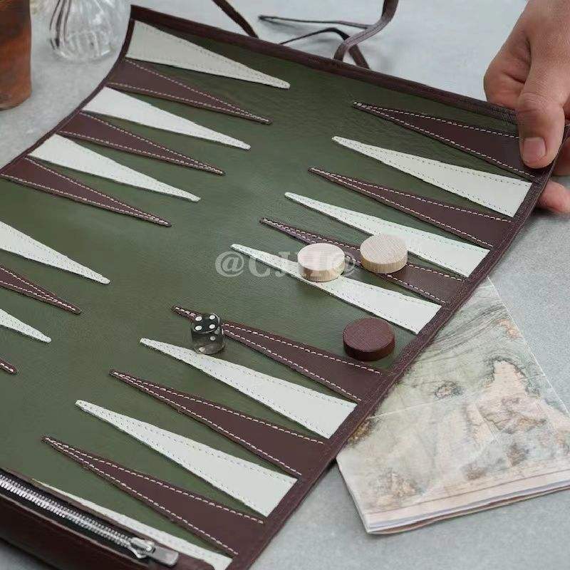 กระดานหมากรุกแบ็คแกมมอนหนังสีคลาสสิก ทนทาน เหมาะสำหรับเด็กและผู้ใหญ่ ใช้เล่นเพื่อความบันเทิงกลางแจ้ง