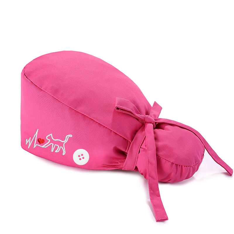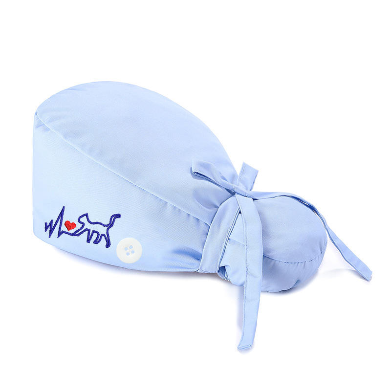 หมวกผ้าโพลีเอสเตอร์ปักลายแมวปรับได้พร้อมกระดุมระบายอากาศสำหรับวอร์ดและผู้ป่วยนอก