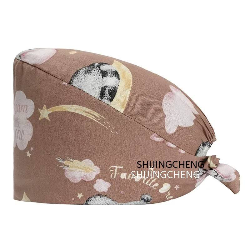 หมวกสครับสำหรับผู้หญิงแบบมีกระดุม 2 เม็ดและแถบซับเหงื่อ ปรับขนาดได้ หมวกพยาบาลทรงบูฟฟอง
