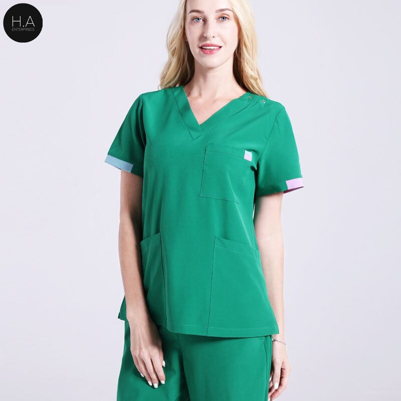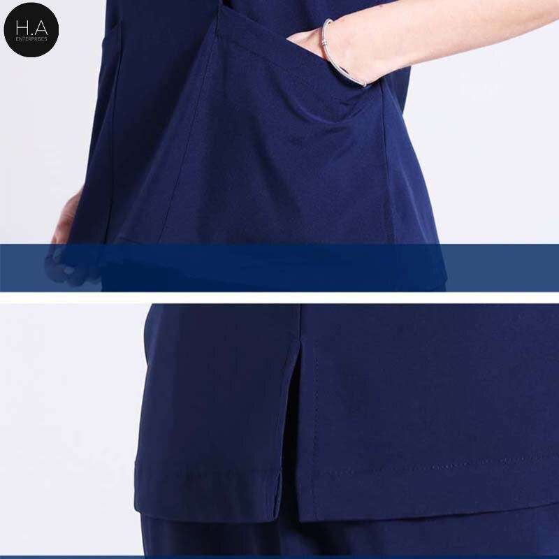 ชุดสครับยูนิฟอร์มทางการแพทย์สีดำ ชุดทำงานพยาบาล เสื้อและกางเกงสครับ คอวี ชุดแพทย์พยาบาล