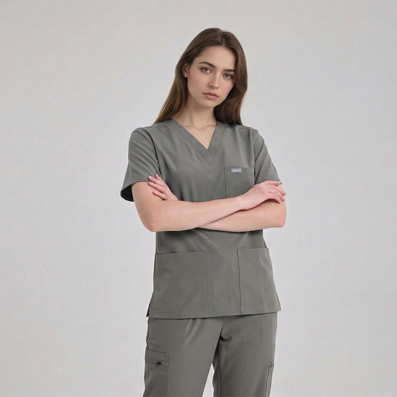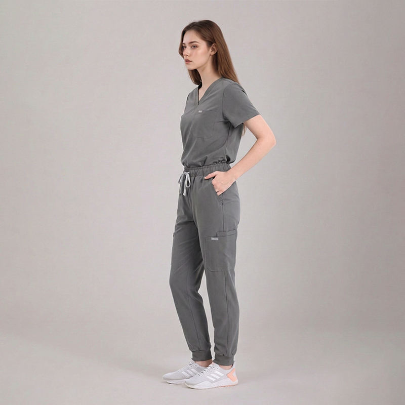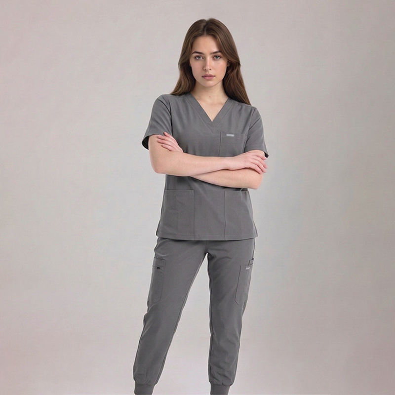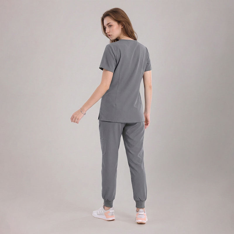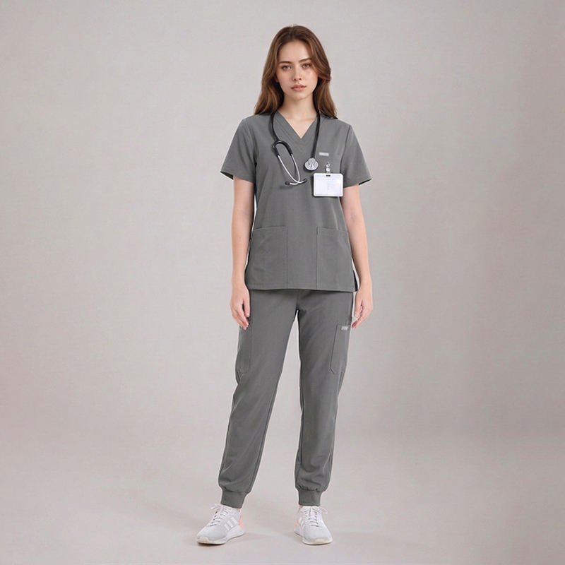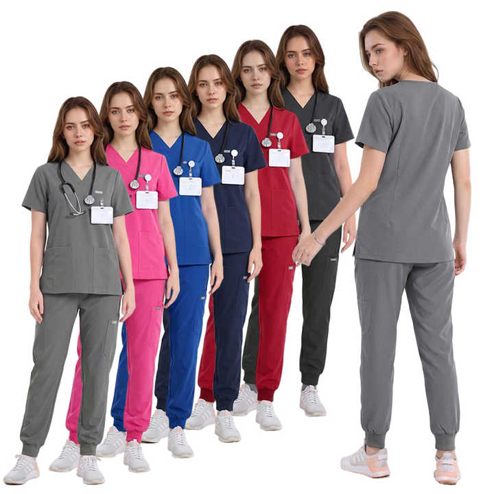 ชุดสครับสำหรับแพทย์และพยาบาล ชุดสครับคอวี แขนสั้น กางเกงจ็อกเกอร์ กระเป๋าหลายช่อง ชุดสครับทางการแพทย์