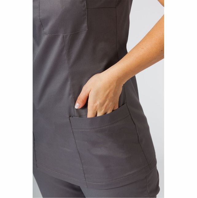 ชุดเสื้อสครับคอตั้งแขนสั้นสำหรับผู้หญิง ชุดยูนิฟอร์มโรงพยาบาล สีและขนาดตามสั่ง ผ้าเจอร์ซีย์ แห้งเร็ว ระบายอากาศได้ดี