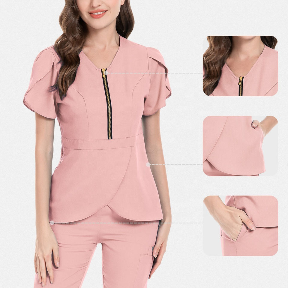 ชุดเครื่องแบบพยาบาลทางการแพทย์แบบยืดได้ชุดเสื้อและกางเกงผ้าฝ้าย100% ซักได้สำหรับโรงพยาบาลร้านเสริมสวย