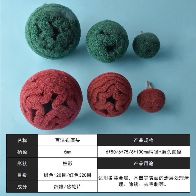 แผ่นขัดหัวเจียร 6 มม. ด้ามจับสีเขียวแดง ล้อไฟเบอร์สำหรับขัดโลหะ กำจัดสนิม