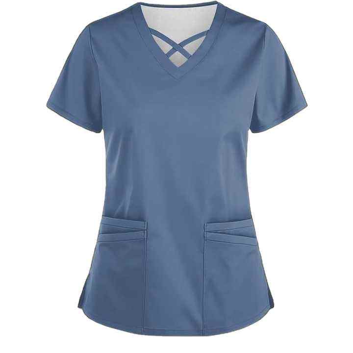 เสื้อสครับสำหรับผู้หญิงและผู้ชาย คอวี แขนสั้น ชุดยูนิฟอร์มพยาบาล เสื้อยืด