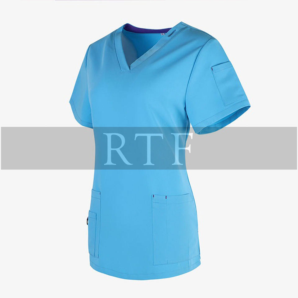 เสื้อคลุมสครับพยาบาลคอวีเสื้อแจ็กเก็ตชุดเสื้อแจ็กเก็ตแขนสั้นผ้าคอตตอนสำหรับ100% ปรับแต่งได้รุ่น ODM จากโรงพยาบาลความงามที่ดี