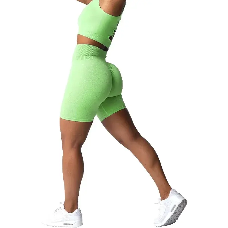 กางเกงขาสั้นเล่นโยคะไร้ตะเข็บรัดรูปเอวยางยืดผ้าสแปนเด็กซ์ระบายอากาศได้สำหรับผู้หญิงเล่นกีฬาวิ่งสันทนาการกระชับสะโพก