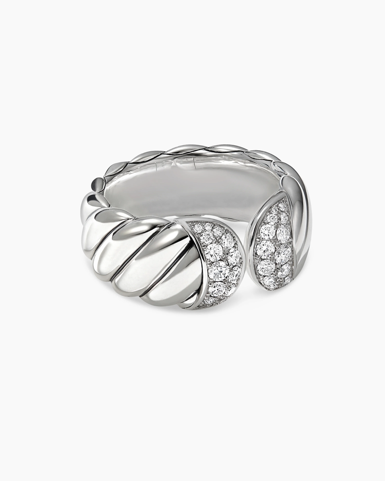 แหวนลายเคเบิลสำหรับเครื่องประดับแฟชั่นผู้หญิง เงินแท้ 925 ชุบสแตนเลส พร้อมเพชรขาวรับรองโดย IGI