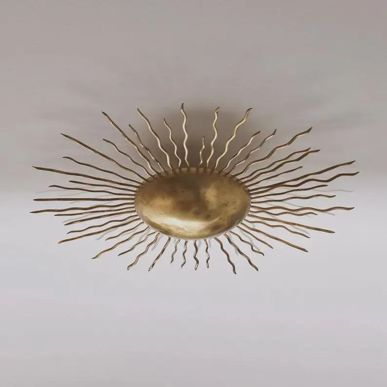โคมไฟติดเพดานรูปปั้นทองเหลืองแบบ3ไฟทรงพระอาทิตย์ตกจี้ทองเหลืองดิบทันสมัยโคมไฟติดเพดานสไตล์สปัตนิก