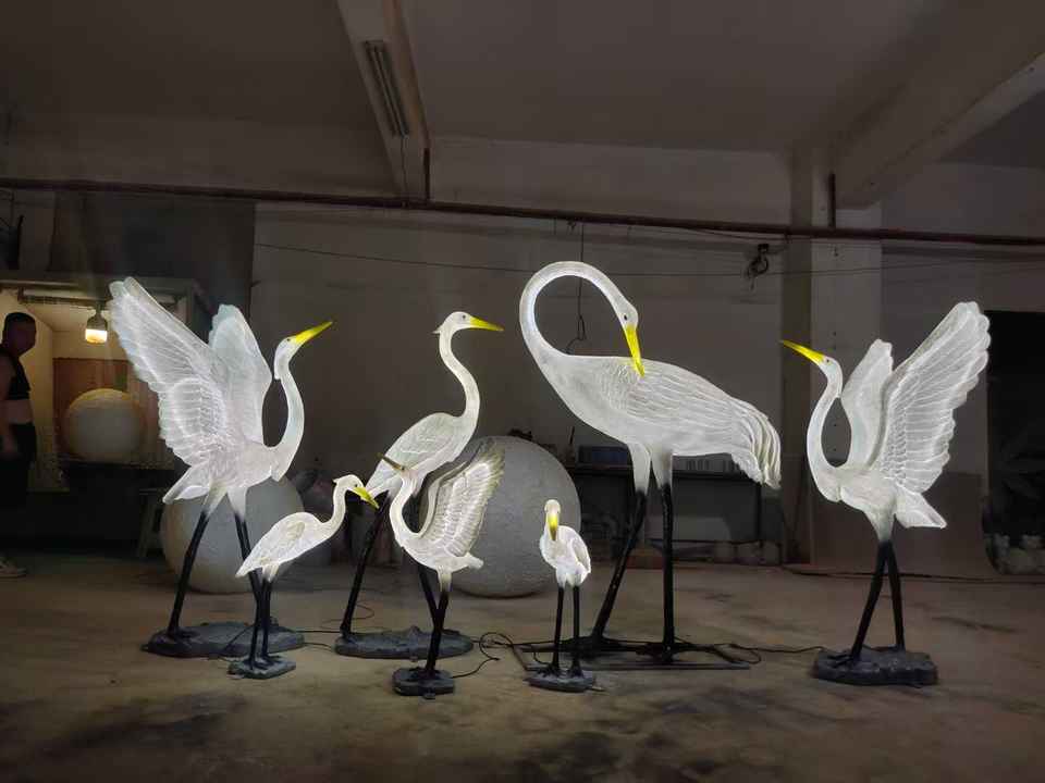 โคมไฟรูปนกกระยางพร้อมไฟ LED IP65 สำหรับงานเทศกาล สวนสาธารณะ และกิจกรรมในสวน