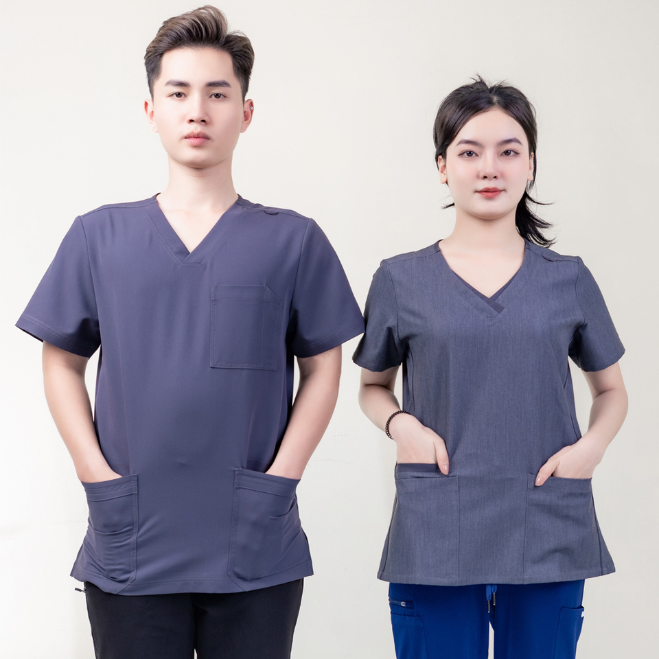 เสื้อยูนิฟอร์มสครับทางการแพทย์คุณภาพดีระบายอากาศได้ดีห่อด้วยถุงพลาสติกจากผู้ผลิตจากเวียดนาม