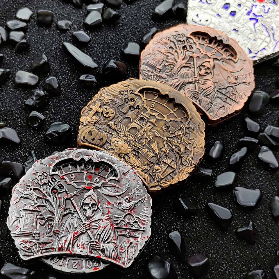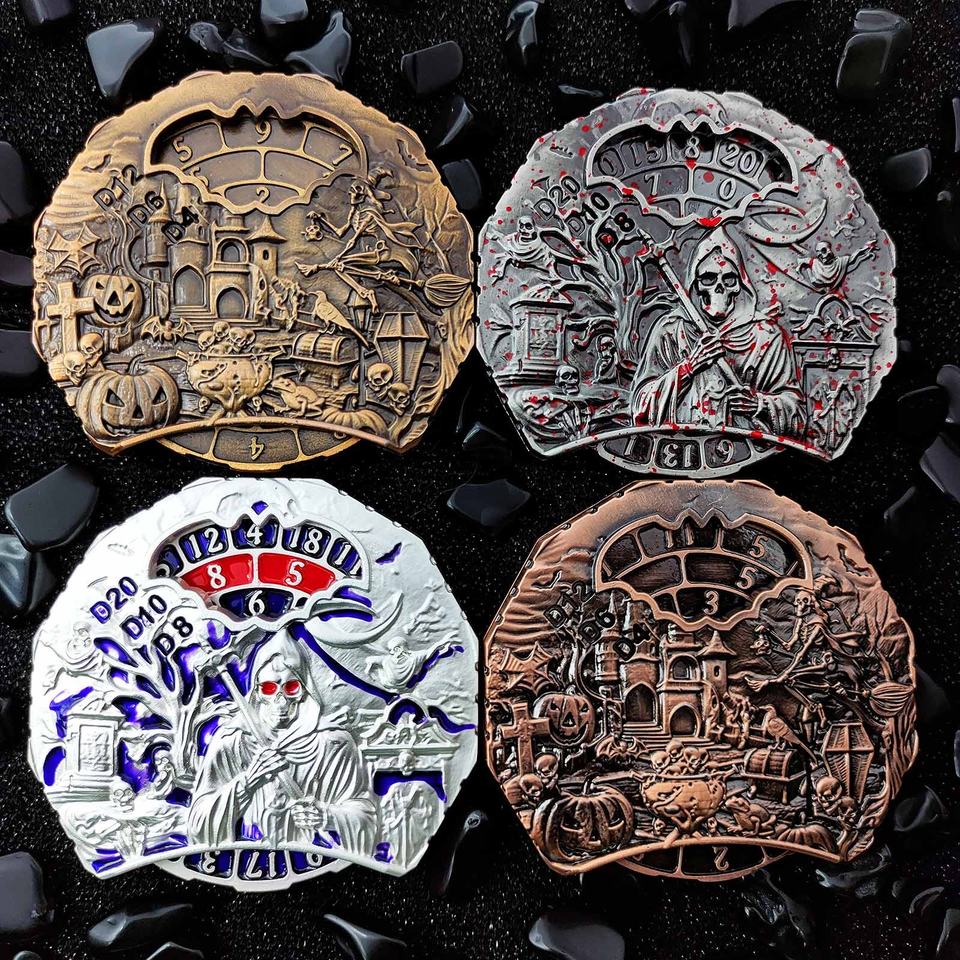ชุดรูปแบบฮาโลวีน7-in-1ลูกเต๋าโลหะเดี่ยวหมุนปลายนิ้วลูกเต๋าสำหรับเกมกระดาน DND RPG