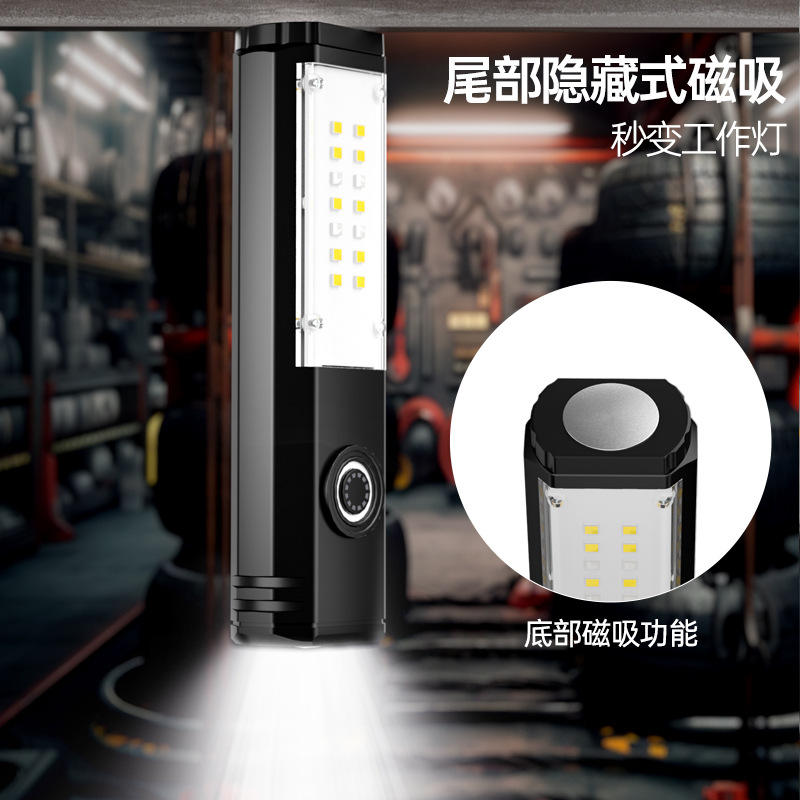 Sd18 ไฟฉาย LED แบบชาร์จไฟได้ 2000 มิลลิแอมป์สีดำสีแดงไฟทำงานสำหรับตั้งแคมป์กลางแจ้ง USB ชาร์จไฟฉายฉุกเฉิน