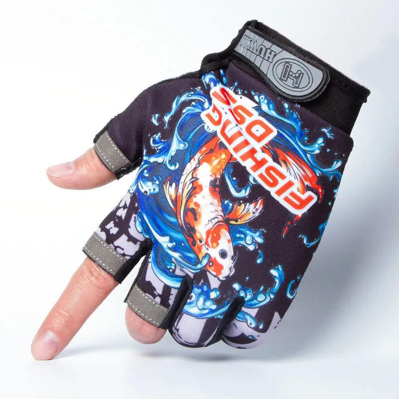 ถุงมือตกปลาทะเลแบบครึ่งนิ้วกันน้ำกันลื่นสำหรับตกปลาด้วยเหยื่อปลอมอุปกรณ์กลางแจ้งสำหรับทุกเพศพร้อมดีไซน์ปลาคาร์พ