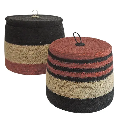 ตะกร้าเก็บหญ้าทะเลทำด้วยมือและเป็นมิตรกับสิ่งแวดล้อมทันสมัยพร้อมการออกแบบที่ปรับแต่งได้สำหรับตกแต่งบ้าน-ขายส่ง