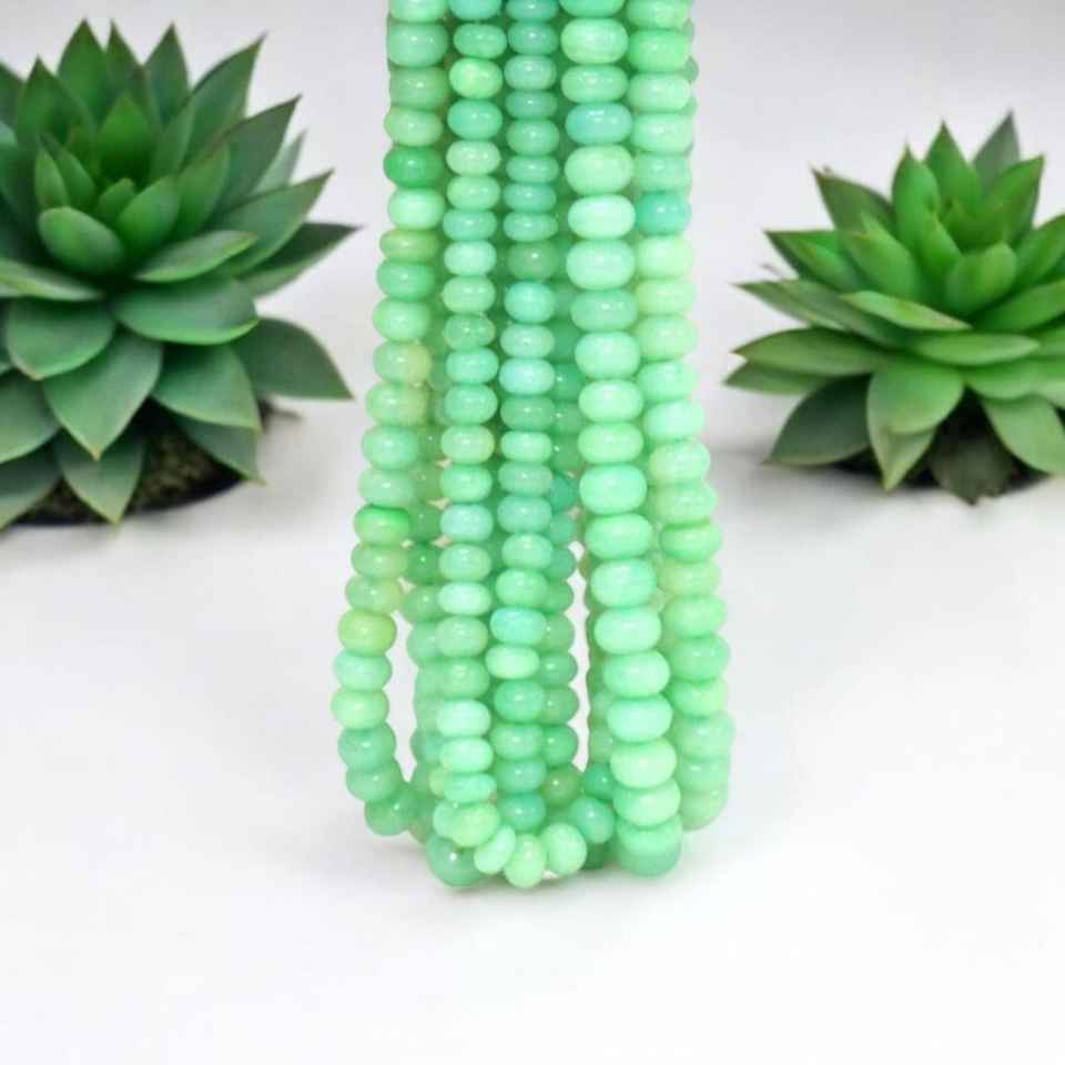ลูกปัดสี:Sea Green Color Opal Smooth Rondelle