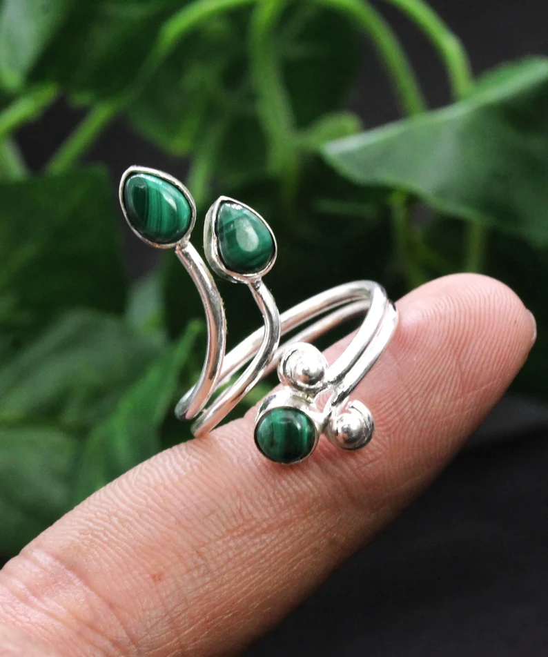 แหวนพลอย Malachite Cabochon สำหรับฤดูร้อนเครื่องประดับขายส่งราคา925แหวนเงินแท้ BEZEL set สำหรับวันคริสต์มาส