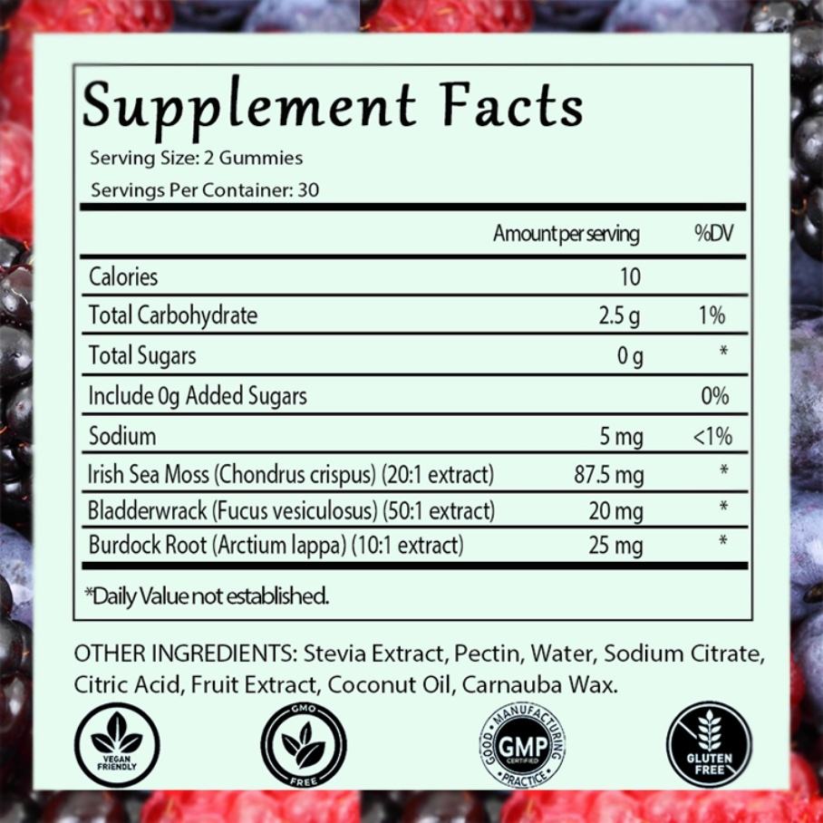 ส่วนผสมหลัก:Irish Sea Moss, Bladderwrack, Burdock Root