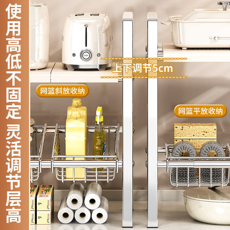 ชั้นวางของในครัวสแตนเลส Sea Shark แบบยืดหดได้หลายชั้นอเนกประสงค์สำหรับจัดเก็บอุปกรณ์ทำครัว
