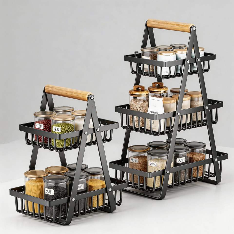 ชั้นวางของ Sea Shark 2 ชั้น ทำจากเหล็กคาร์บอนอเนกประสงค์ สำหรับจัดระเบียบของในครัว ใส่ขนม ผลไม้ และผัก