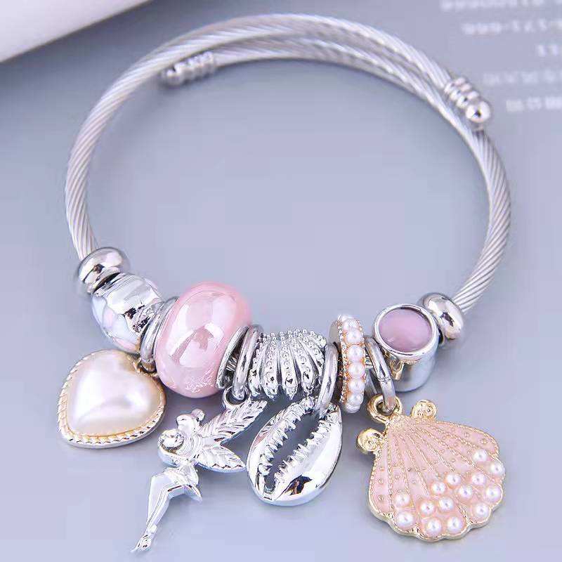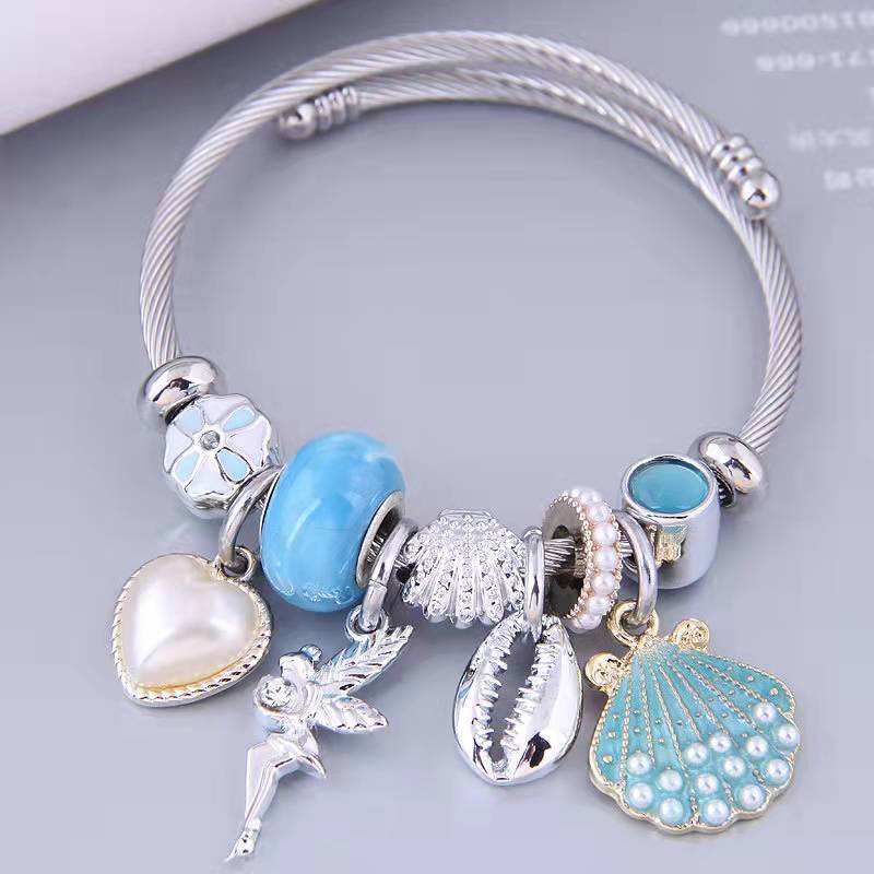 ชื่อสินค้า:สร้อยข้อมือลวดพันเปลือกหอยประดับลูกปัด สร้อยข้อมือลวด และจี้