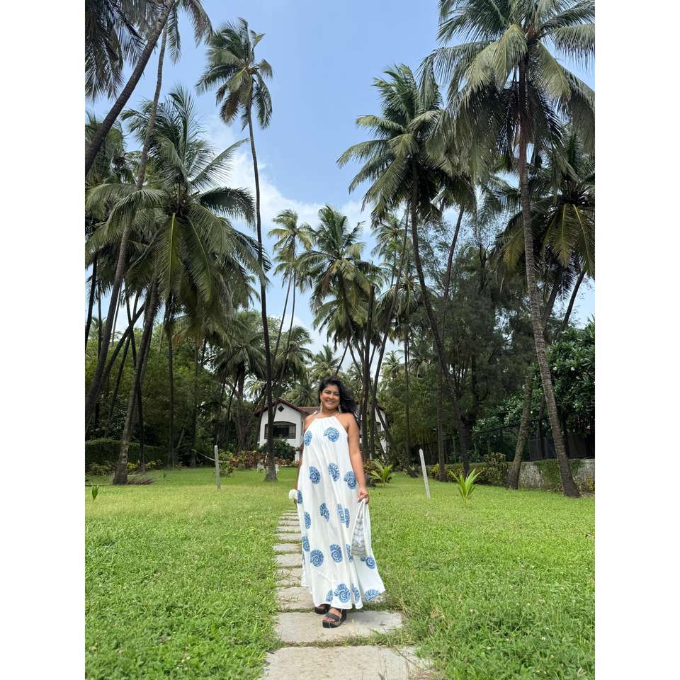 ชุดเดรสยาวลายพิมพ์มือ Sea Swirl ผ้ามัลมัล ไซส์เดียว ใช้คลุมชุดว่ายน้ำได้