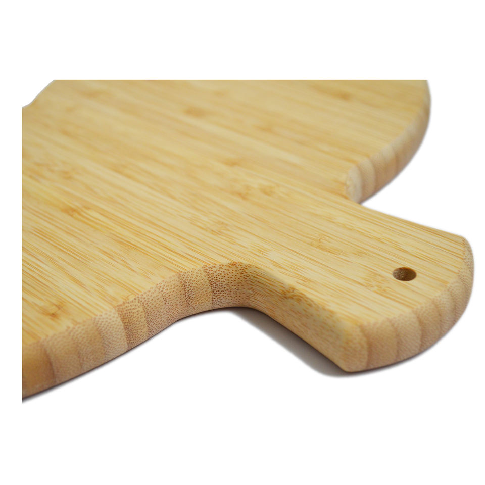 เขียงไม้ไผ่รูปทรงกระดานโต้คลื่นลายหางวาฬ สำหรับเสิร์ฟอาหารและชาร์กูเตอรี เป็นมิตรกับสิ่งแวดล้อม ยั่งยืน ทนทาน หนา 1.5 ซม.