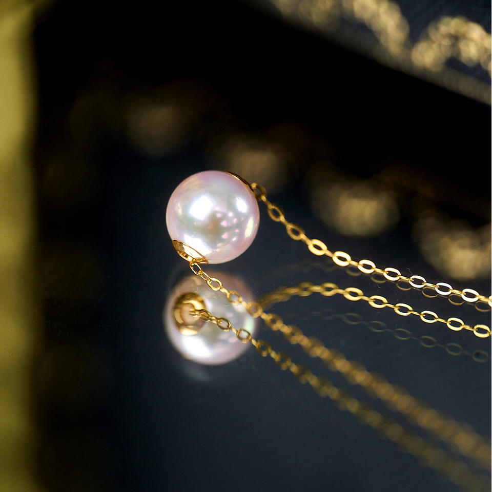 สร้อยคอจี้ไข่มุกทะเลตาฮิติ 9-10 มม. สีออโรร่า ดีไซน์เรียบหรูแบบเจ้าหญิงไดอาน่า ทอง 18K สำหรับผู้หญิง สไตล์หรูหราเบาๆ