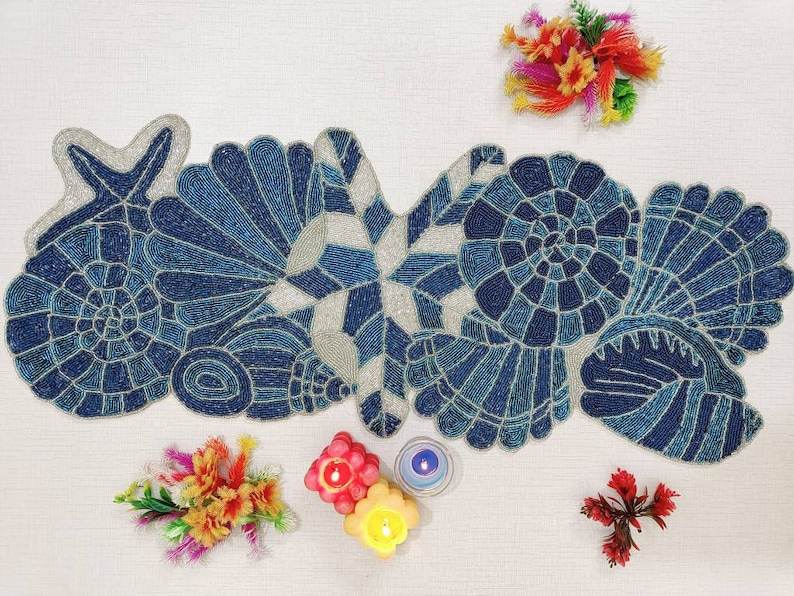 ผ้าปูโต๊ะลายปะติดหลากสีสัน ประดับด้วยลูกปัด สำหรับงานเลี้ยงฉลอง งานเทศกาล ตกแต่งโต๊ะอาหาร
