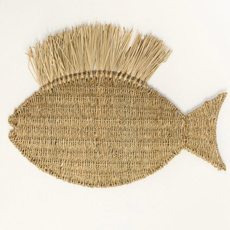 งานศิลปะแขวนผนังจากหญ้าทะเล ของตกแต่งบ้าน รูปทรงปลา ทำจากฟางหญ้าทะเล