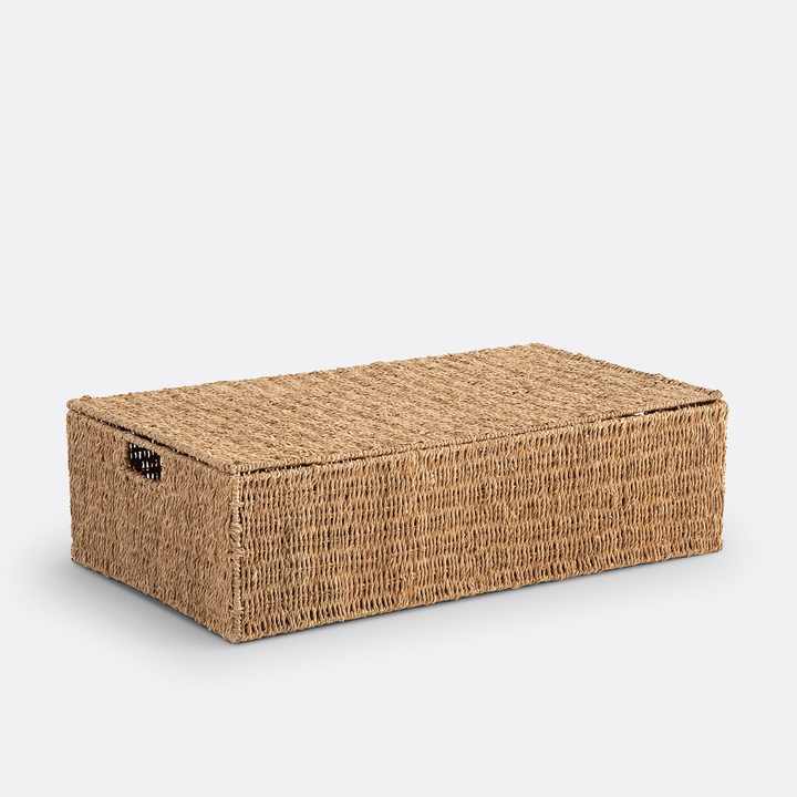 กล่องเก็บของทำจากหญ้าทะเลคุณภาพสูง ฝาปิดทำจากหญ้าทะเล มีหูหิ้วแบบเจาะรู สำหรับจัดระเบียบของใช้ในบ้าน