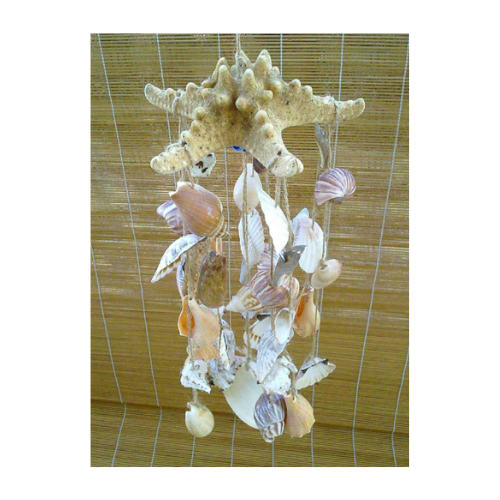 กระดิ่งลมเปลือกหอยที่มีเปลือกหอยธรรมชาติหลายชั้นและดีไซน์เชือกสำหรับระเบียงที่จัดแสดงงานทำมือในเวียดนาม